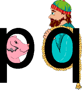 Pippy Pig and Quinn the Quarry Man face each other on the Alphabet Frieze and on the Character Card.
